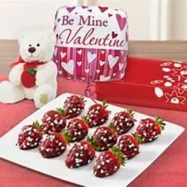 Price: $89.99 Chocolate Strawberries, Teddy Bear And Box Of Chocolates Product Tags: Same-day Delivery