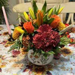 Please note, arrangements are shown as the deluxe version. If you order a standard size arrangement, product will be delivered as a smaller version, with less blooms.