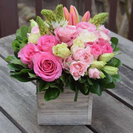 Please note, arrangements are shown as the deluxe version. If you order a standard size arrangement, product will be delivered as a smaller version, with less blooms.